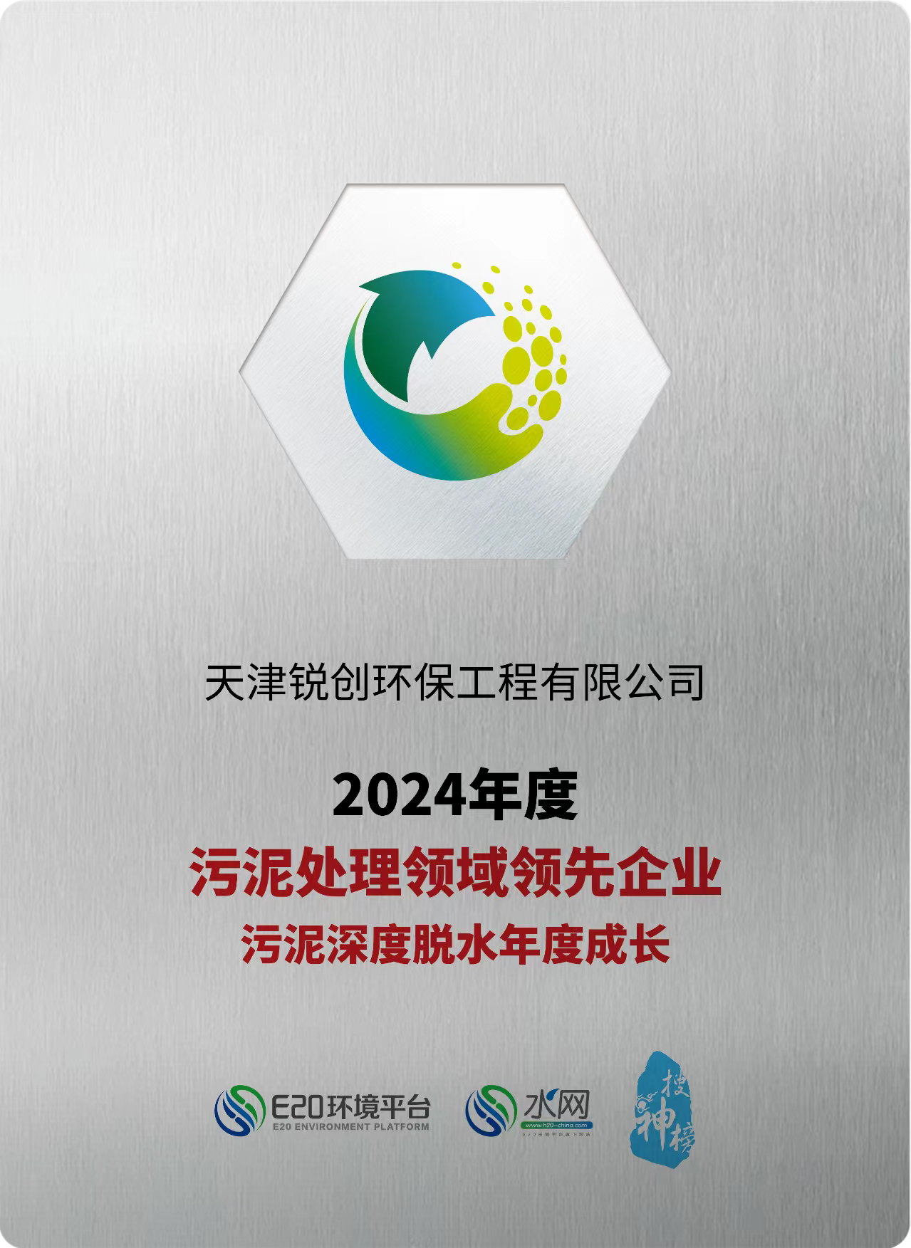 重磅喜訊!在剛剛落幕的"2025(第二十三屆)水業戰略論壇"上,天津銳創環保工程有限公司憑借硬核實力榮耀登頂,一舉斬獲 "2024年度污泥處理領域領先企業 "即 "污泥深度脫水年度成長獎"!
